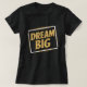 This design features a motivating slogan, "DREAM BIG", highlighted by a bold and imposing gold-colored typography. The background is black, creating a striking contrast that highlights the text. The font is modern with a slightly retro touch, evoking strength and ambition. The letters are framed by a rectangle with irregular edges that seems to be stamped, giving an impression of dynamism and authenticity. This design is for those who seek inspiration and encouragement to pursue their great dreams and goals, whether in their personal or professional life.