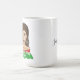 Portrait of a Latina with the quote "Dream Big Mija" coffee mug. The Latina fashion illustration female is wearing silver hoop earrings and brown lipstick. She is also wearing a red and green shirt. Cute quote illustration that represents hope and hard work. Personalise the mug with a name.