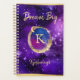 This glam girly outer space design features a starry purple night sky with artistic, circular, gold-edged watercolor magenta purple and blue along with a circular paint stroke in the centre and a customisable gold monogram. The gold edge of the circle in the centre is adorned with a small gold moon and star for an extra touch of classy sparkle. Above the monogram is the text, "Dream Big" in elegant gold calligraphy script typography for a cool hand-lettered look. Below the monogram is a customisable name in matching script. The top and bottom are also edged in gold paint strokes. You can personalise this item by changing the text in the product template. The design has been optimised for the small version of the planner. You can find the larger version in the same collection.
