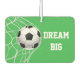 Air freshener is shown with a graphic print design of a sports soccer ball.