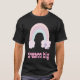 I give wanted to give this a 4 instead of a 5 because these Basic DARK T0shirts run unexpectedly SLIM or Narrow. Which is great if you do not have a potbelly, but I have a paunch. It isn't the shirt's fault that I've got a beer belly. The design and shirt itself is a quality cotton shirt. The color is more of a deep purple, but still a very pretty color. The Basic DARK T-shirts run a bit SLIMMER than the Basic Ts. The neck is a fraction narrower (or seems to be narrower) also. I'm a paunchy middle-aged woman and my neck is 12 inches (31cm) thick and the neckline fell about the same as in the photo of the man, and I had the desire to tug it a bit. So if you're a thick necked man or like loose shirts, be aware these are slimmer shirts. Once I get rid of my lockdown paunch it'll look great. The shirt washed well in cold water with no apparent bleeding. We don't have a dryer, so it hung dry. Did not shrink. Love the colors and the design. The design looks smaller on my shirt than it does on the model on-line. But still, it looks good on the shirt. The printing looks as it does on the model, just the size seems fractionally smaller. Washed garment in cold water, hung dry and design appeared unaffected.