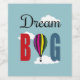 Dream big text design illustration with colourful hot air balloon and cloudy sky decoration. It is possible to change the background colour and to add different one to the design with your choice.