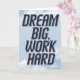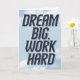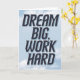Send a powerful, achievement-focused message with this dynamic card. The phrase "DREAM BIG, WORK HARD" is rendered in bold, stacked block letters with a strong drop shadow, creating a 3D effect. The text is set against a bright, airy blue sky background with subtle clouds. This design is perfect for graduation, encouraging entrepreneurs or students, or motivating anyone to reach for ambitious goals. Its athletic, gender-neutral aesthetic makes it ideal for a hustle mindset or a new job celebration.