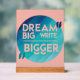 Transform your workspace into a haven of inspiration with our stunning Acrylic and Wood Block Desk Image, featuring the empowering phrase "Dream Big, Write Bigger." This eye-catching piece combines the sleek elegance of acrylic with the warm, natural beauty of wood, creating a striking visual that will elevate any desk or office environment. The bold typography serves as a daily reminder to unleash your creativity and ambition, encouraging you to pursue your dreams with passion and determination. Perfect for writers, entrepreneurs, or anyone looking to add a touch of motivation to their surroundings, this desk image is not just decor; it's a statement piece that fuels your drive. With its durable construction and modern design, it seamlessly fits into any aesthetic, making it an ideal gift for yourself or a loved one. Embrace the power of words and let this inspiring piece guide you on your journey to greatness!