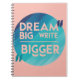 Unleash your creativity and ambition with the "Dream Big Write Bigger" spiral notebook, a perfect companion for dreamers, writers, and thinkers alike. This beautifully designed notebook features a vibrant cover that inspires you to reach for the stars while providing ample space for your thoughts, ideas, and aspirations. With its high-quality, lined pages, you can jot down everything from daily reflections to grand plans, ensuring that no idea goes unrecorded. The durable spiral binding allows for easy flipping and writing, making it a practical choice for both home and on-the-go use. Whether you're sketching out your next big project or simply doodling your dreams, this notebook serves as a constant reminder to dream big and write even bigger, empowering you to turn your visions into reality.