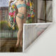Hi I want to ask is material could differ from what is on your picture and what is used. See photos. Printing went quite well but bottom of tapestry have to be stretched out to see full tapestry without folding.