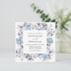 This design features a square frame of watercolor roses and peonies and other flowers in dusty blue and periwinkle colours on a white background.
