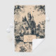 Fairytale castle in a toile de jouy print. Delicate trees surround an enchanting castle with background of aged ivory and print in deep midnight blue.