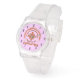 I only have one complaint. I ordered the watch with clear case and strap, and what was sent was white case and strap. I'm going to keep it because 1) it looks very nice in white, and 2) it would take too long to get a replacement made and sent in time for my occasion. Aside from the mix up with the color, the watch does look very good in white. The purple dial is actually sparkly which did not show in the online images. That was a nice surprise. If you like Swatch watches this is very similar to those. It's 33.6mm in diameter, 10.5mm thick, and 40.6mm lug to lug. Stainless steel case back says 3ATM/30m WR, so no swimming or showering or submerging this one. If you like Woodstock, this is a great choice.