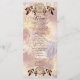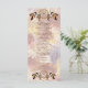 A dream-catcher design with a gold & brown trimmings that includes a round bamboo circle web of life with brown tones feathers and red beads on a soft feather background to personalise for your big day.
