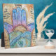 Many contemporary Judaica artists use symbolism from middle eastern culture, combining old traditions with modern art, while adding elements from their own imaginations. It is my intention to present a series of hamsas that create a bridge between our humanness and the divine. In my paintings, the classic eye is replaced with a heart to create a more intimate view into the soul. Enjoy the Dream Hamsa!