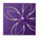 Against a abstract kaleidoscope background of soft apophysis fractals is a four-petaled flower of silver filigree, with a sparkling amethyst in the centre and small round gemstones in the corners. An illustration using purple as a symbol of royalty and wealth.