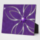 Against a abstract kaleidoscope background of soft apophysis fractals is a four-petaled flower of silver filigree, with a sparkling amethyst in the centre and small round gemstones in the corners. An illustration using purple as a symbol of royalty and wealth.