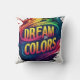 The "Dream in Colours" pillow design features the same vibrant rainbow of colours that flow and intertwine seamlessly to form the letters as the t-shirt design. This creates a dynamic and visually striking effect that will add a pop of colour to any room. The pillow is soft and comfortable, making it perfect for lounging or sleeping.