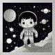 A young astronaut on the moon, a poster suitable for children who dream of working as astronauts.