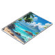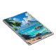 Dream On, tropical beach surrounded by beautiful palm trees, golden sand, and deep blue water.