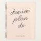 A simple planner with informal causal handwritten script typography quote "dream plan do" in black on a blush pink background. The text can easily be personalised for a design especially for you! The perfect inspirational gift or accessory for any purpose!