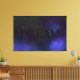 Canvas print with the word 'dream' in solid black capital letters set against a soft black starry night sky amid blue and purple nebula space clouds. Subtle, dark, and deep like the mysterious realm of dreams. Use the text template to add a name or inspiring short quote. ♡ Idyllfire