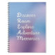 Inspiring Travel words - Discover, Roam, Explore, Adventure and Memories spelling out Dream on shimmery gradient background notebook