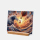 Embark on a fantastical journey with "Dream Weaver's Journey," a breathtaking AI-generated masterpiece that blends the whimsical and the majestic. This vibrant artwork features a striking hot air balloon, resplendent in stripes of red, yellow, and blue, soaring amidst a sky filled with countless other colourful balloons. Below, a dramatic, swirling ocean wave, reminiscent of Hokusai's iconic style, crests with foamy splendour.