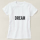 A simple design of the word "DREAM" in capital letters. This t-shirt DREAM slogan has an inspirational message, encouraging all those around you to follow their dreams.
