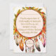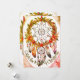 Infuse your holiday greetings with the enchanting charm of a dreamcatcher! This unique Christmas greeting card features a wreath shaped like a dreamcatcher, adorned with vibrant red hollies, radiant red Christmas flowers, gleaming ornaments, and lush green winter leaves twined gracefully around a rustic brown vine. At its heart is a starlike flower set within a delicate circular dreamcatcher web, exuding magical charm. The design is completed with dangling beads and feathers in teal, brown, and muted lavender tones for a whimsical boho touch.