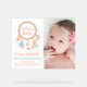 Bohemian tribal dreamcatcher loop with beads and feathers in pastel colours. Gender neutral baby birth announcement card, can be used for either a boy or a girl. Customise with your baby photo and information.