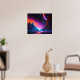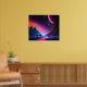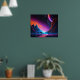 This breathtaking artwork captures the serenity and beauty of a foreign stylised mountain landscape. The ethereal colours and synthwave style give it a dreamlike quality, making it a peaceful and mesmerising piece.