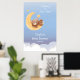 Dreaming Teddy Bear Moon Soft Blue Baby Shower Poster