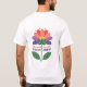 The t-shirt design features a stylised flower with a bud blooming in the centre, symbolising the beginning of new dreams.