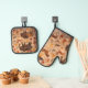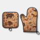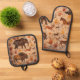 Stepped back in time while you cook with this Paleolithic dreams kitchen set this striking duo features and all over print inspired by ancient cave paintings showcasing prehistoric giant like mammoths bison and wild horses. The designers acted with primitive handprints and earthy Otens creating a rugged historical look that stands out in any modern kitchen high-quality and heat resistant this oven mitt and potholder set is the perfect gift for history buffs archaeologist or anyone who wants to bring a touch of the ice age to their home baking