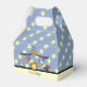 Bring out the dreamer in your little one with this playful, space-themed mobile adorned with a crescent moon, shooting star, bright sun, rocket ship, and colourful planet hanging from arms with blue and purple zigzag details and a star right in the middle. A pattern of pale blue stripes in two shades and soft yellow stars adds a nice background to the brightly coloured mobile. Customise the message in the colour block with your soon-to-be little one's gender or a message of your choice to create a truly unique box to hold all the treats for all of your baby shower attendees. These can also make a great way to announce the new baby to your family and friends. Be sure to check out the full Dreams of Space Mobile collection for more great gifts and products for a baby shower or the little one in your life.