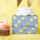Bring out the dreamer in your little one with this playful, space-themed mobile adorned with a crescent moon, shooting star, bright sun, rocket ship, and colourful planet hanging from arms with blue and purple zigzag details and a star right in the middle. A pattern of pale blue stripes in two shades and soft yellow stars adds a nice background to the brightly coloured mobile. Customise the monogram in the sun with the soon-to-be little one's last initial to create a truly unique wrapping paper for your chosen gift. Be sure to check out the full Dreams of Space Mobile collection for more great gifts and products for a baby shower or the little one in your life.