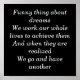 Funny thing about dreams We wor our whole lives to achieve them And when they are realised We go and have another