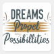 The design features the text "Dreams Propel Possibilities" in a colour design. Each word is a bright colour, creating a playful and eye-catching look.
