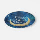 Dreams Really Do Come True Moon & Stars Baby Shower Paper Plates - With pretty painted watercolor texture background, hand lettered text, gold glitter foil look, and hand drawn elements; waxing crescent moon, stars, shooting star trails and bubbles, in a night sky galaxy. This super cute and fun celestial Plate is perfect for your dream come true baby shower. In shades of dark navy blue, light blue, teal, white, and gold. Can be used for baby boy, or girl for this gender neutral design.