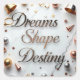 The phrase "Dreams Shape Destiny" is rendered in a sleek, metallic font, evoking a sense of strength and determination. The metallic sheen adds a touch of elegance and sophistication to the design.