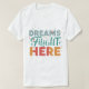 The t-shirt design features the text "Dreams Take Flight Here" in a variety of colours. The text is bold and dynamic, evoking a sense of limitless possibilities. The design is playful and whimsical, featuring colourful balloons and confetti. The design is full of energy and excitement, reflecting the joy of achieving one's dreams. The design is modern and eye-catching, representing the power of imagination and creativity.