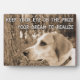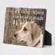 The plaque is quite well-made! The easel is sturdy and can be conveniently moved to set it anywhere I need to be motivated! I keep it on a table next to my bed, first thing I see in the morning, last thing I see at night. The printing of the image my dog Valentino in the pines is perfect! Another beautiful product from Zazzle. Thank you!