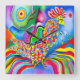 "Dreamscape Bird". In a surreal dreamscape, a cockerel strides confidently, its feathers adorned in a kaleidoscope of hues, blurring the lines between reality and fantasy. A colourful surreal abstract of a cockerel with attitude. Square version.