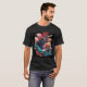 I give wanted to give this a 4 instead of a 5 because these Basic DARK T0shirts run unexpectedly SLIM or Narrow. Which is great if you do not have a potbelly, but I have a paunch. It isn't the shirt's fault that I've got a beer belly. The design and shirt itself is a quality cotton shirt. The color is more of a deep purple, but still a very pretty color. The Basic DARK T-shirts run a bit SLIMMER than the Basic Ts. The neck is a fraction narrower (or seems to be narrower) also. I'm a paunchy middle-aged woman and my neck is 12 inches (31cm) thick and the neckline fell about the same as in the photo of the man, and I had the desire to tug it a bit. So if you're a thick necked man or like loose shirts, be aware these are slimmer shirts. Once I get rid of my lockdown paunch it'll look great. The shirt washed well in cold water with no apparent bleeding. We don't have a dryer, so it hung dry. Did not shrink. Love the colors and the design. The design looks smaller on my shirt than it does on the model on-line. But still, it looks good on the shirt. The printing looks as it does on the model, just the size seems fractionally smaller. Washed garment in cold water, hung dry and design appeared unaffected.