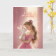 A radiant, fairytale-inspired birthday card featuring a young woman in a soft pink gown sharing a tender moment with an adorable bunny dressed in matching pink. Bathed in warm, glowing light, this design captures sweetness, elegance, and celebration. Perfect for anyone who adores romantic, uplifting, and beautifully magical birthday artwork.