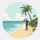 Includes 20 small stickers on one sheet. A romantic illustration of a couple kissing on a serene beach, surrounded by palm trees and the calm sea, perfect for adding a touch of love to any space.