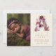 Dreamy Funny Bunny Romantic Floral A Initial in Burgundy & Gold Glitter Effect for Newborn Photo Announcement Card Design.