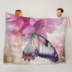Dreamy Butterfly with Pink Flowers Fleece Blanket