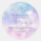 Dreamy and romantic bridal shower favour sticker featuring watercolor illustration of pink, purple, and blue sky with stars and clouds.