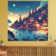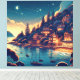 Bring the magic of a Mediterranean evening into your home with this stunning coastal village canvas print. The artwork features a glowing hillside town overlooking a calm harbor, set beneath a breathtaking sky of shooting stars and a crescent moon. With its rich teal blues and warm amber highlights, this high-quality print is perfect for creating a cozy, whimsical atmosphere in a bedroom, living room, or home office. A beautiful gift for dreamers and ocean lovers alike.