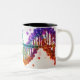 A vibrant, whimsical mug set against a dreamy background. The mug features a gradient of pastel hues blending seamlessly from soft pinks to gentle blues, purples, and oranges. Its surface shimmers with an iridescent glow, reflecting light in a magical way. Surrounding the mug are delicate, swirling patterns of light and colour, evoking a sense of warmth and serenity. The atmosphere is playful yet soothing, with a soft, hazy backdrop of clouds and twinkling stars, creating a cosy, enchanting vibe. Perfect for a calming escape into a dream-like world.