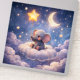 Bring a touch of celestial wonder to your workspace or home with this premium glossy acrylic desk plaque measuring a generous 20.32 cm X 20.32 cm this leak display piece features a high definition watercolour baby elephant nestled on a fluffy cloud beneath a glowing crescent moon and golden stars the vibrant glass like finish makes the deep indigo sky and soft cloud textures pop