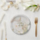 Dreamy Faded White Rose Photo Wedding Couple Names Paper Plate